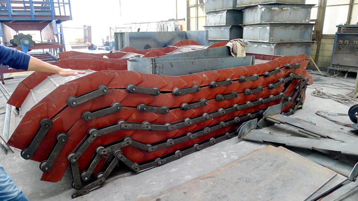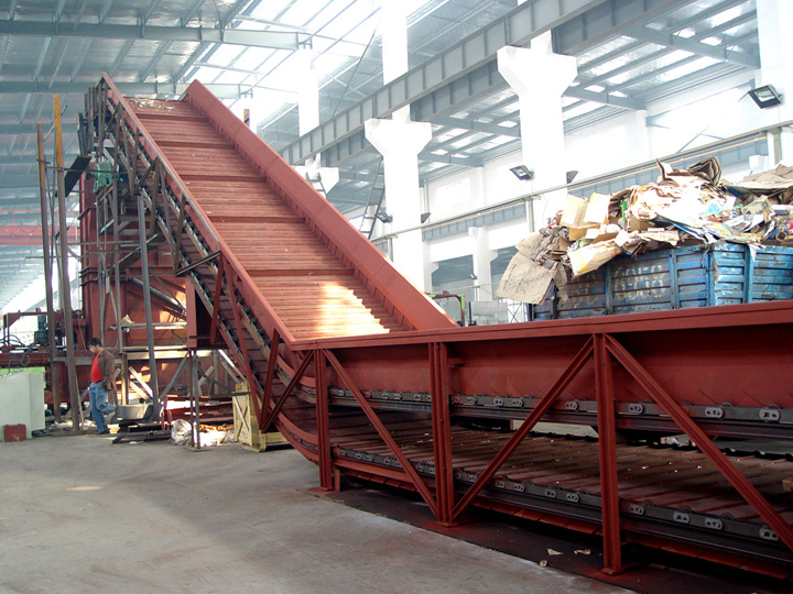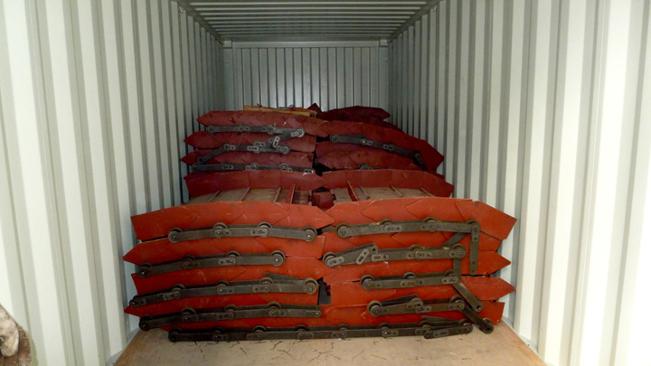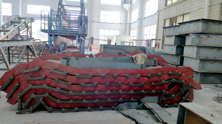 >The conveyor plates could be Mn16 steel (6mm thickness) for conveyance of metal scrap, or carbon steel (4mm thick) for conveyance of paper plastic material.