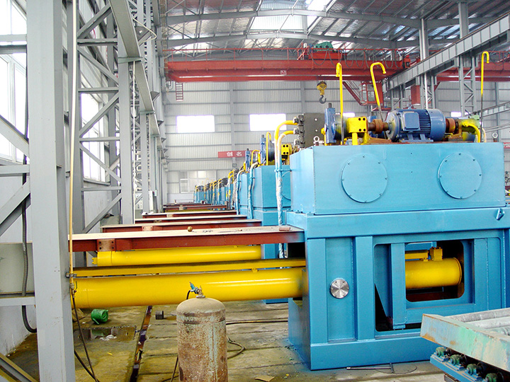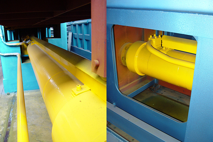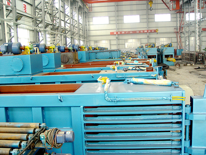 >Horizontal structure with feeding conveyor.